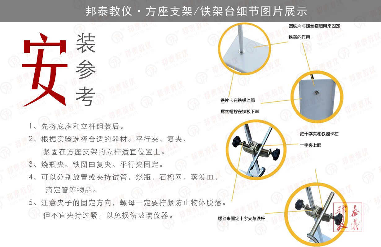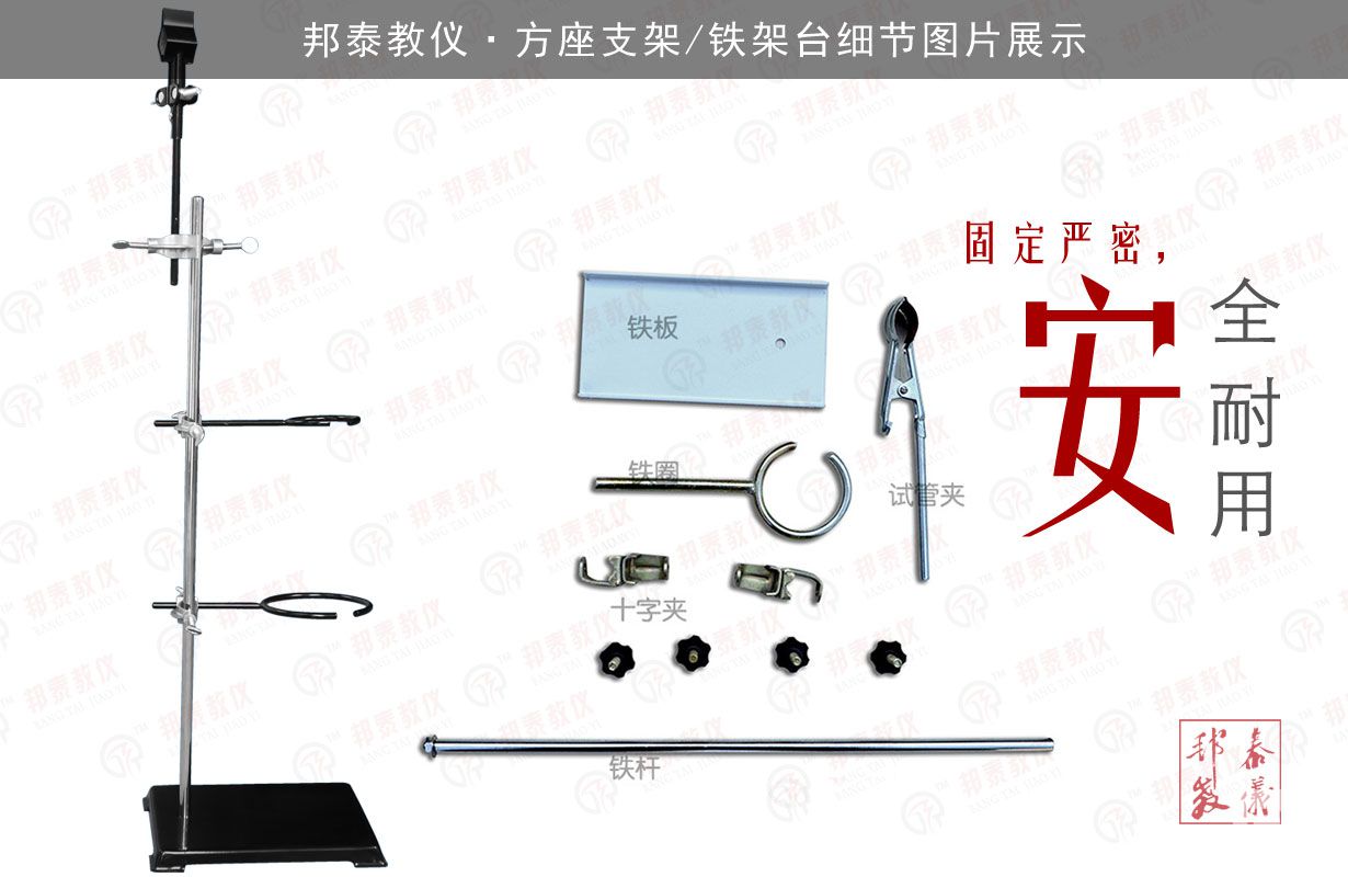 方座支架 中學物理器材 物理實驗器材 實驗附件方座支架是化學實驗中必備儀器之一,邦泰生產的方座支架是根據部標由六個部件組成,結構嚴謹,表明噴以錘紋烤漆,美觀耐用,能滿足實驗室