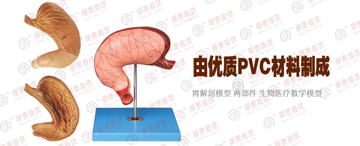 1、產品為近賁門部和幽門部橫斷之放大數倍胃解剖模型。
