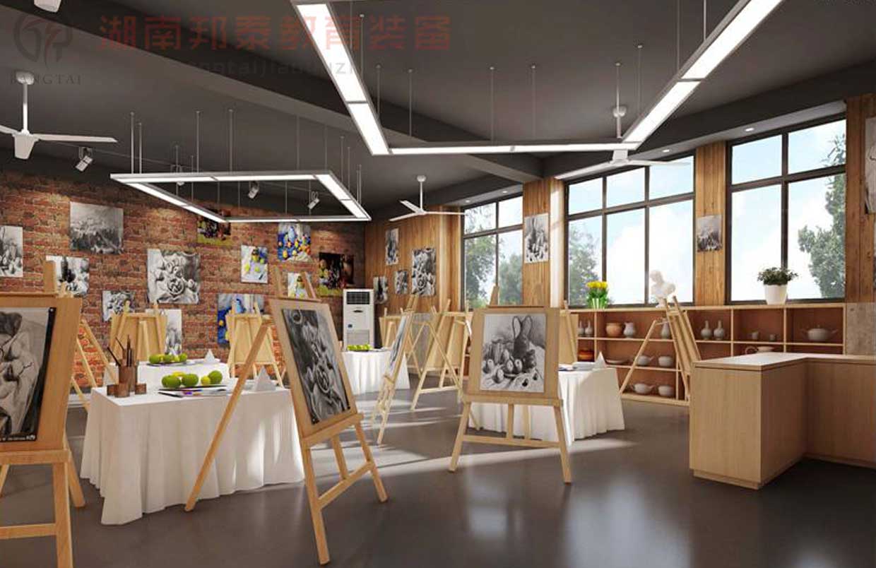 湖南邦泰教學(xué)設(shè)備公司美術(shù)教室是中小學(xué)美術(shù)學(xué)科中學(xué)生進(jìn)行繪畫練習(xí),工藝制作等實(shí)踐活動(dòng)的場(chǎng)所。根據(jù)不同階段教學(xué)要求的不同,在功用上可有所側(cè)重。美術(shù)教室應(yīng)給學(xué)生營(yíng)造一個(gè)美的世界,從感性上吸引學(xué)生對(duì)美術(shù)的興趣。美術(shù)教室的功能與要求,學(xué)校可根據(jù)自身?xiàng)l件選擇按以下來配置。